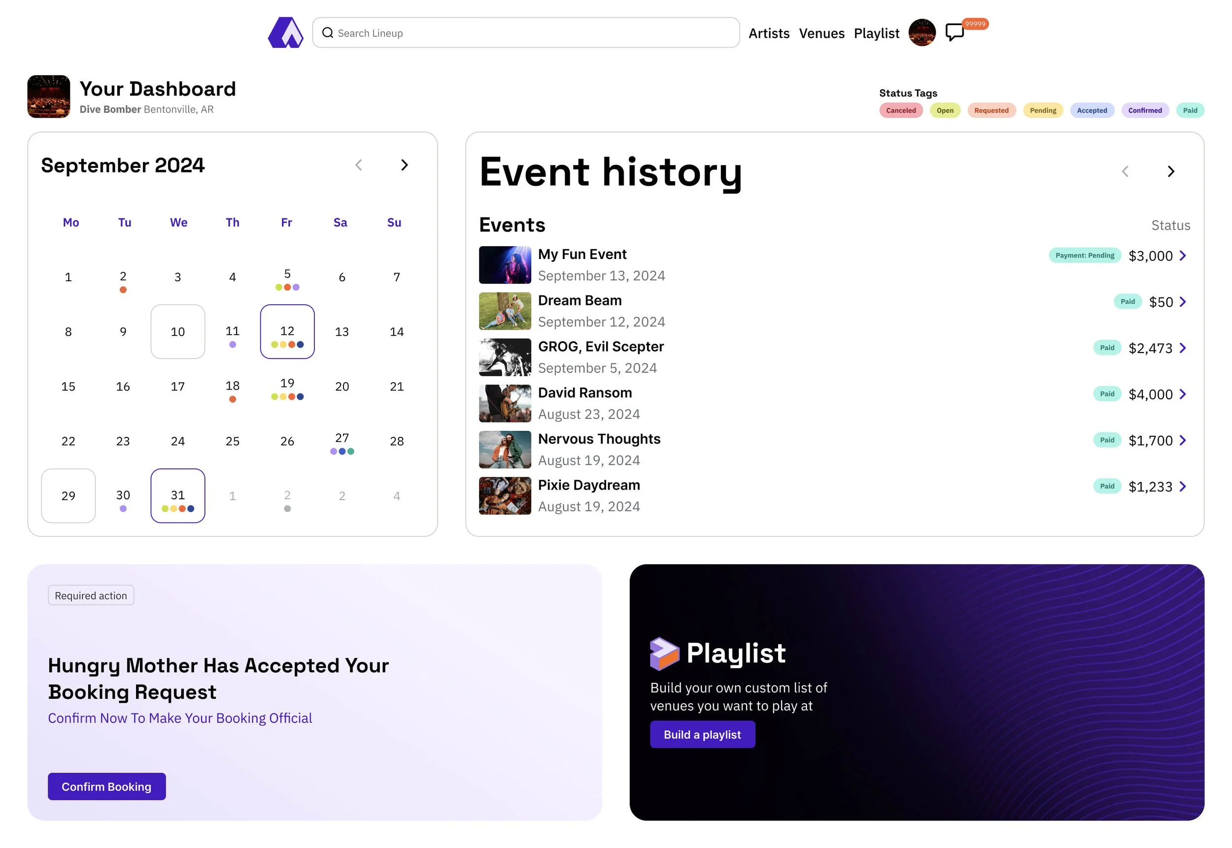 Use this as your contact list for artists or venues you’d like to work with in the future.